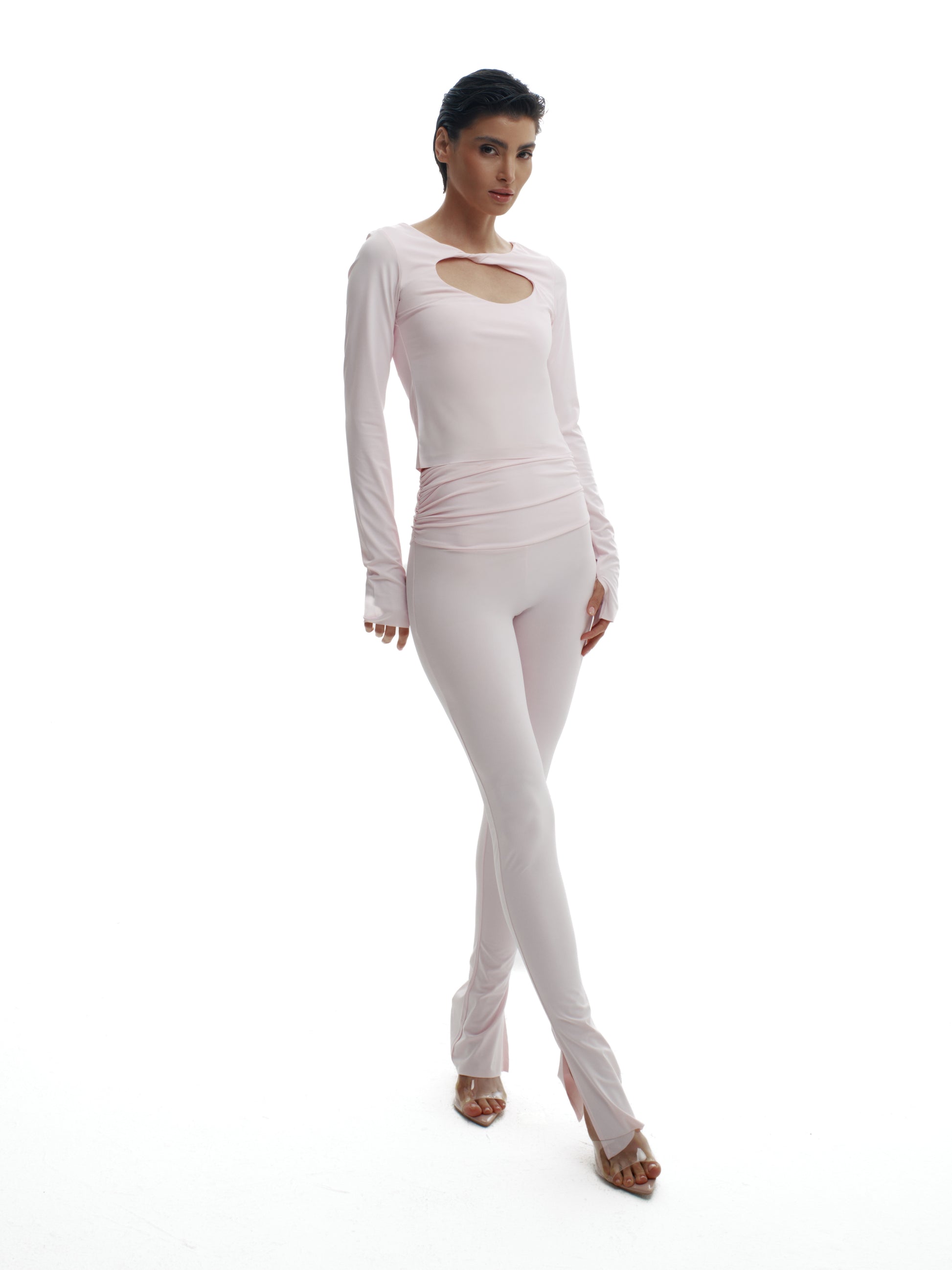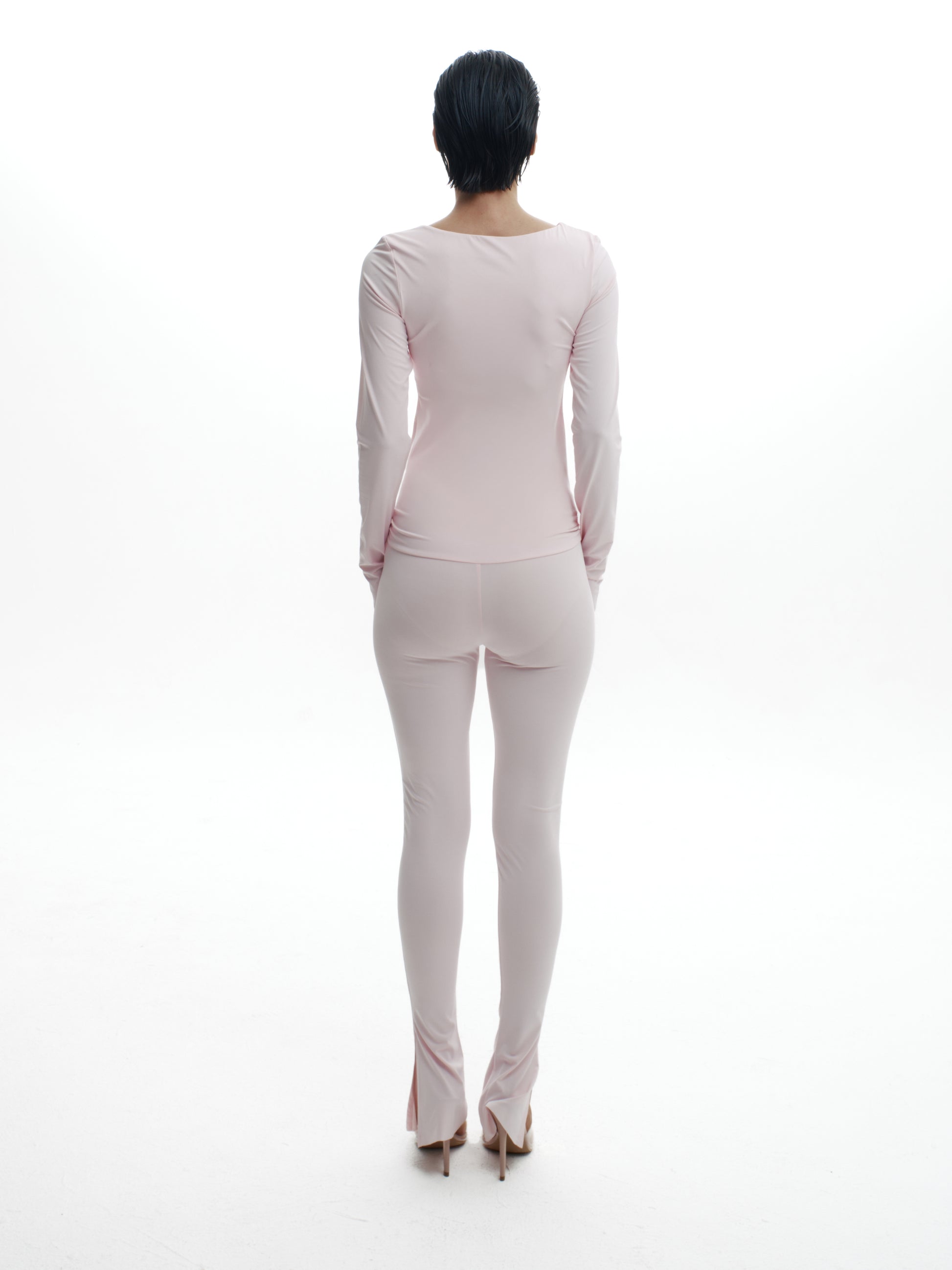 For the girl who knows the power of a double take—the Heartbreaker Set pairs a daring top with leg-lengthening trousers for a look that’s equal parts sweet and striking. The Heartbreaker Top is a fitted long sleeve with a bold cut-out that balances playful charm and confident edge. The Leg Day Trousers sit high on the waist with a sleek, curve-loving fit and a subtle ankle slit, proving that leg day is every day. Crafted in soft stretch fabric, this duo moves with you while keeping its polished finish from coffee dates to late nights.
