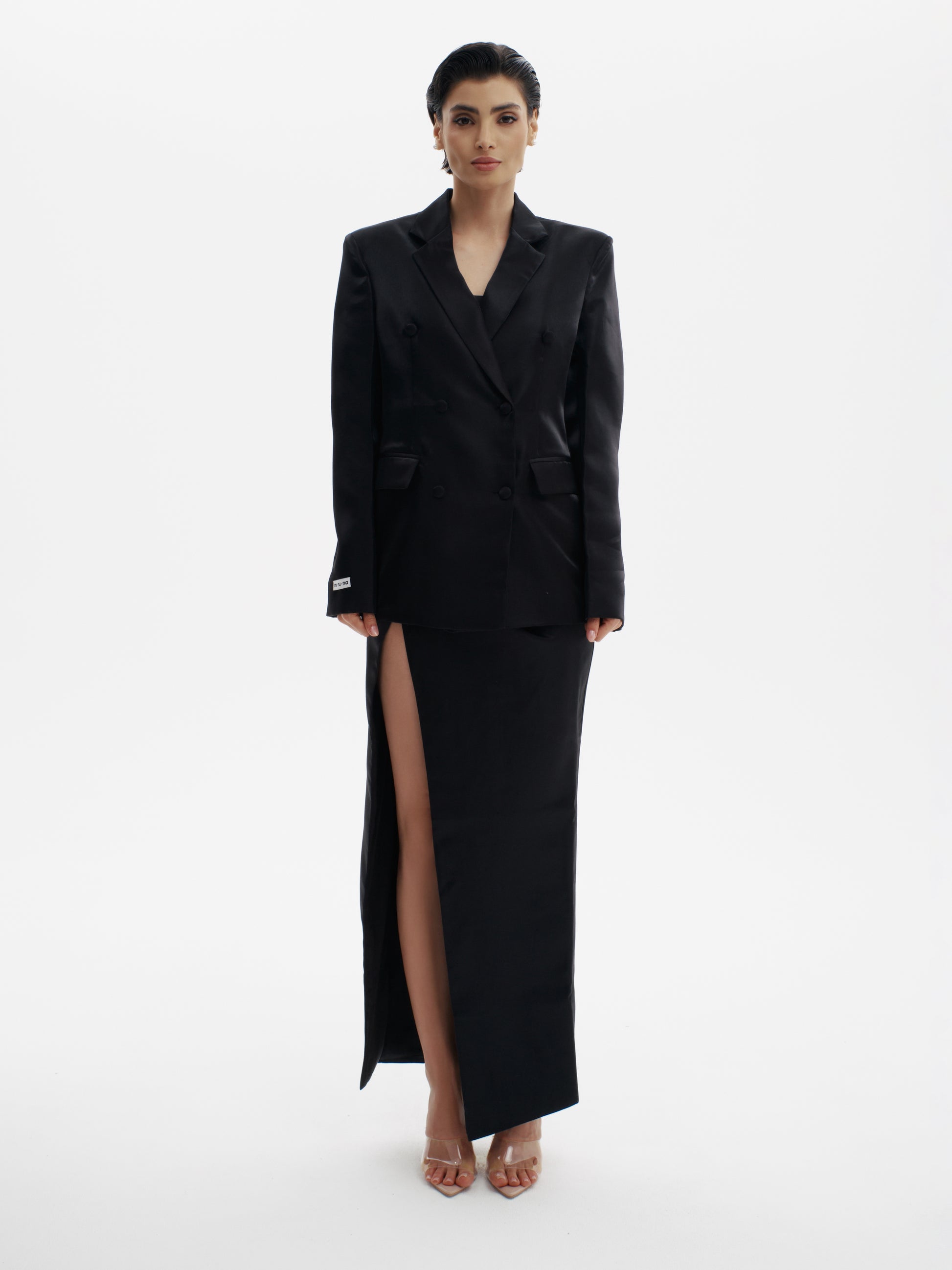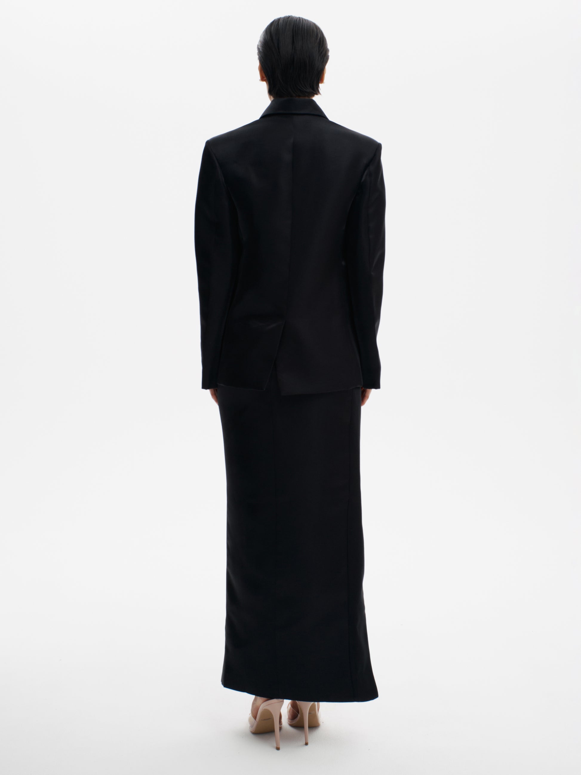 Model is 173 cm / 5’8” and wears size S. This style offers relaxed tailoring—take your usual size for a slightly loose fit or size down for a more defined look.
