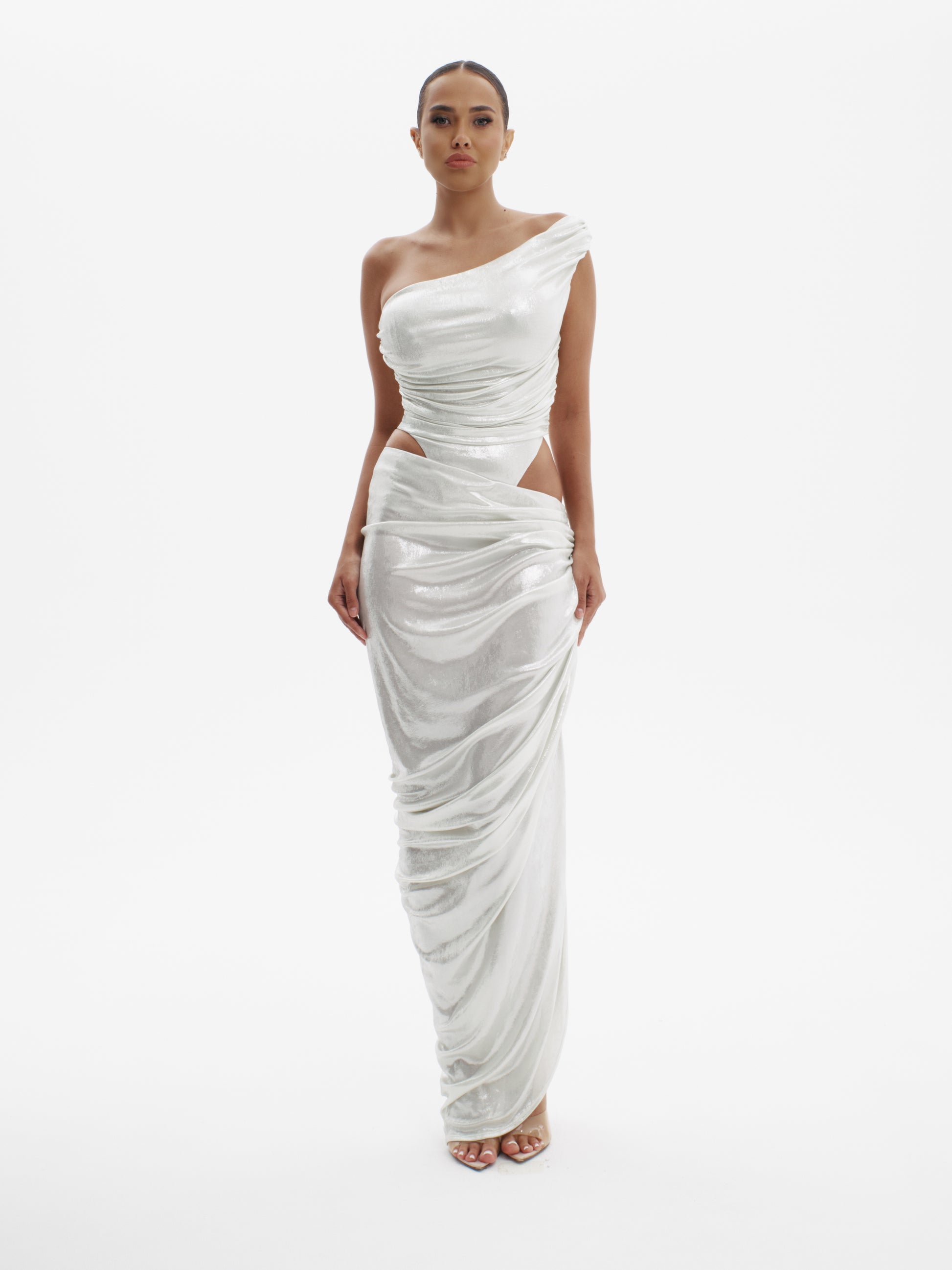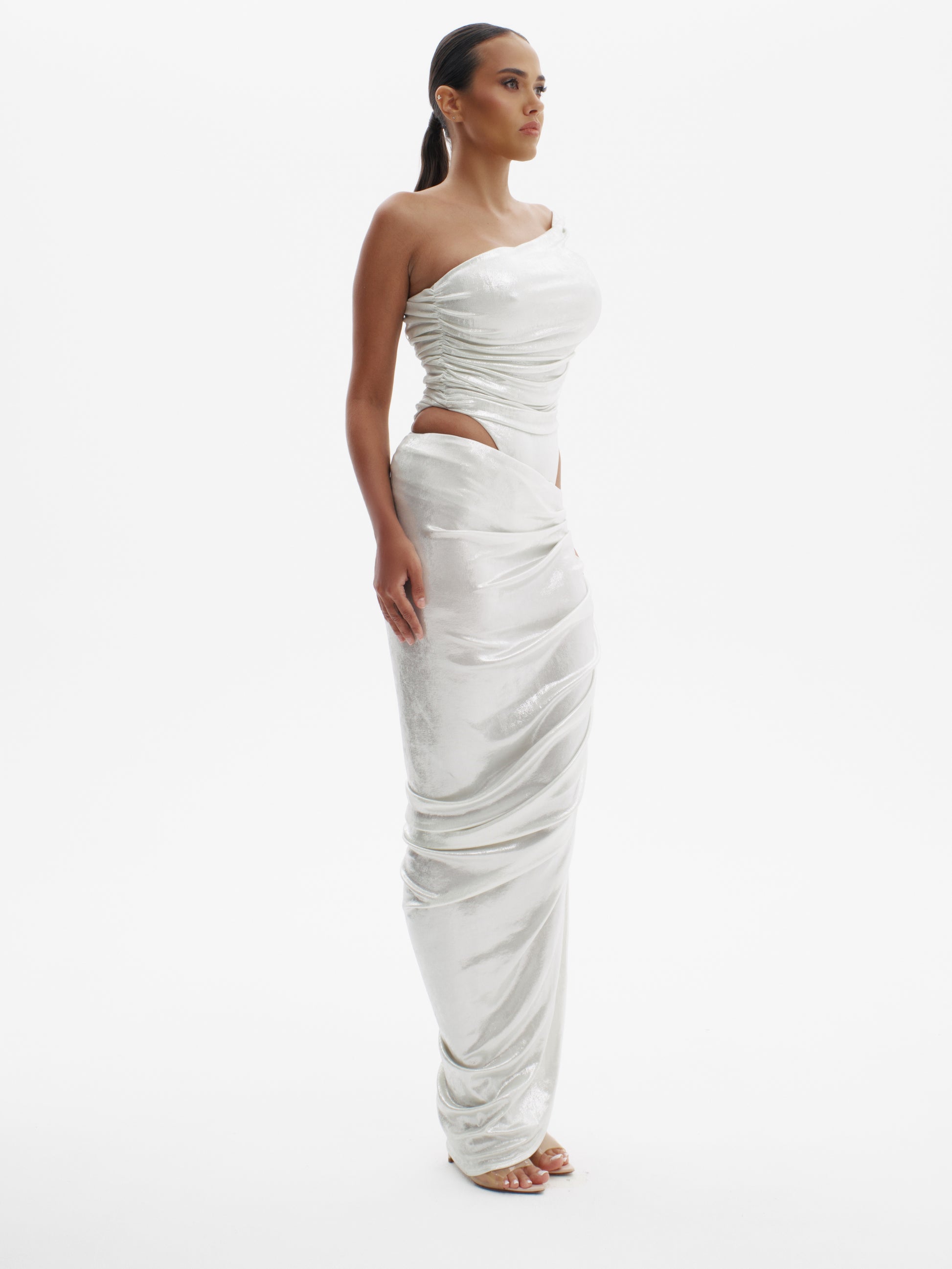 Unapologetically confident and fluidly bold—the Not Sorry Set pairs a sleek sleeveless top with a ruched, asymmetrical skirt for head-turning drama. Designed in shimmering stretch jersey, the thigh-high slit and gathered detailing create a leg-lengthening effect, while the fitted top balances ease and structure. Perfect for evenings that demand extra attitude, whether or not you had permission to be there.