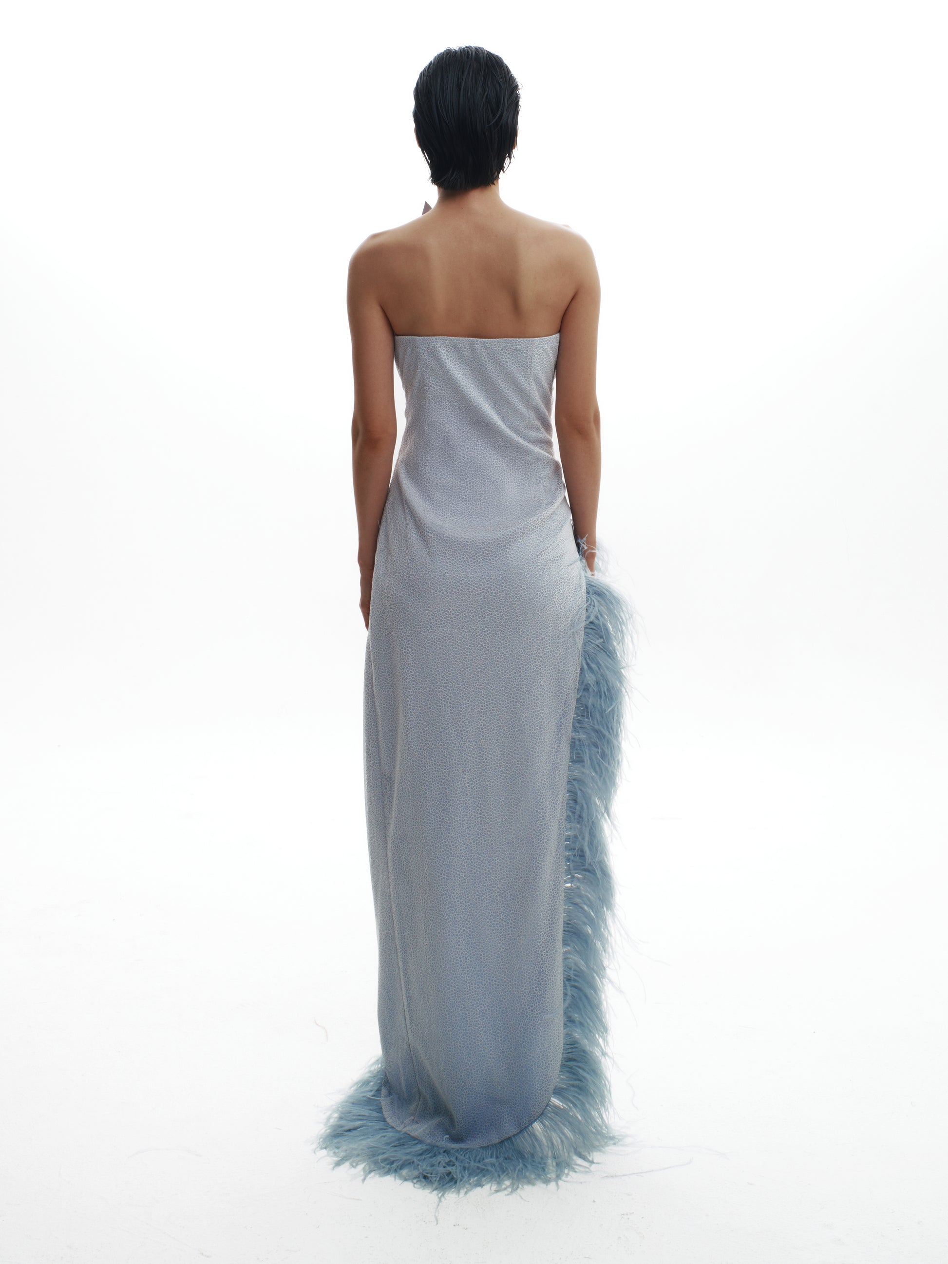 Elegant from afar, unforgettable up close — The Best You Ever Had is designed for the woman who leaves nothing but silence behind. This sleek, feather-slit gown hugs the body in all the right places, blending structure with soft intrigue. Crafted from a luxe cotton-mesh blend with natural feathers tracing the slit, it’s that perfect balance of minimal and magnetic — the kind of dress that doesn’t ask for attention, it owns it.